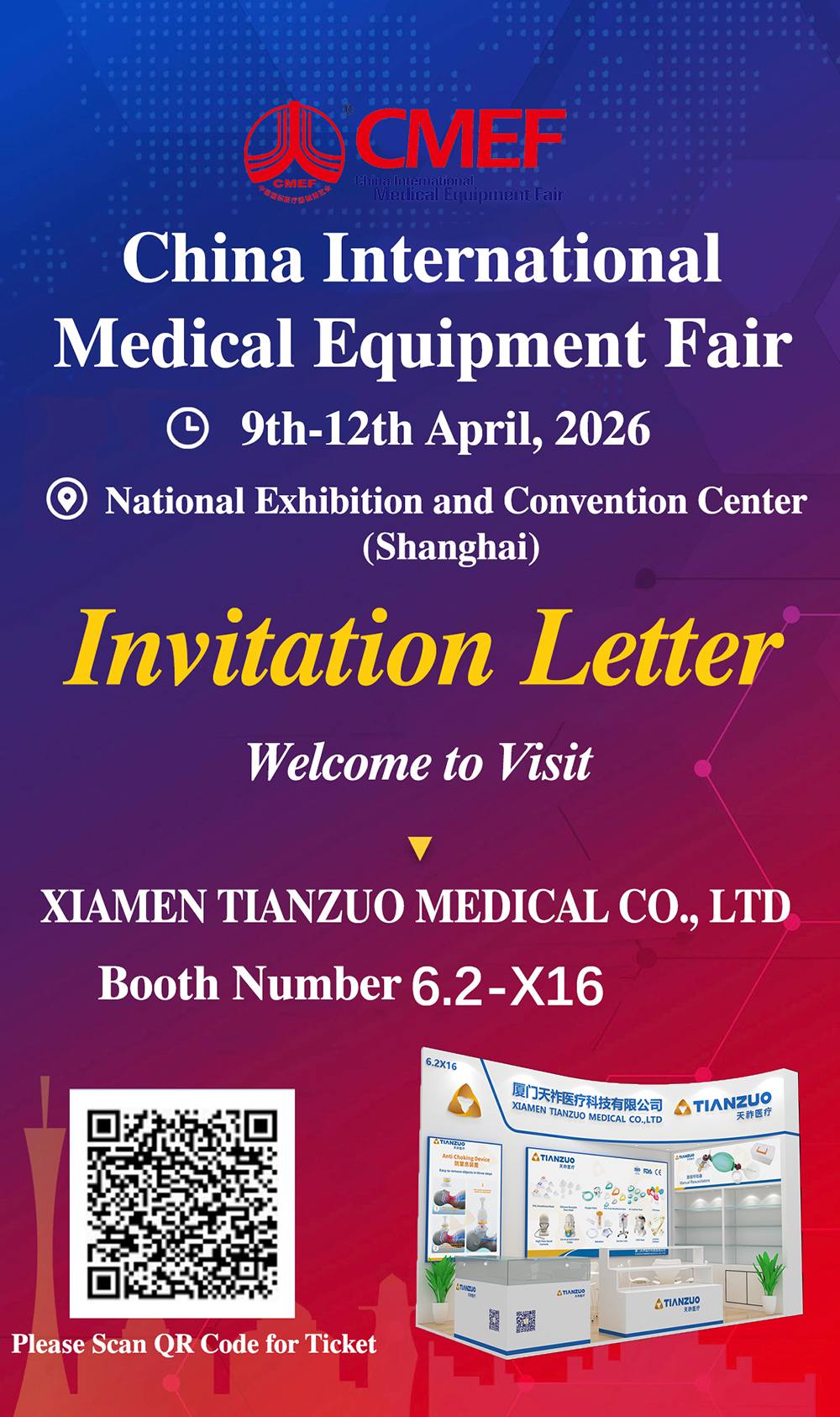 Temos o prazer de lhe estender o nosso caloroso convite para o 93ª Feira Internacional de Equipamentos Médicos da China (CMEF)—uma das exposições médicas mais influentes da Ásia e uma plataforma fundamental para a inovação e o comércio médico global.