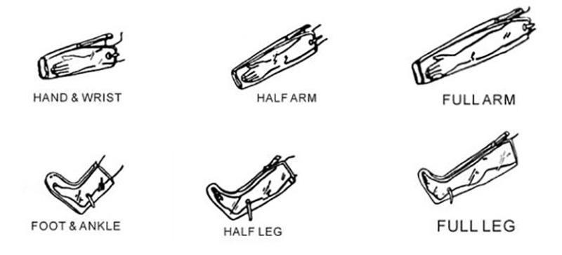 1. Três tamanhos diferentes para o braço: mão e pulso, meio braço e braço inteiro.