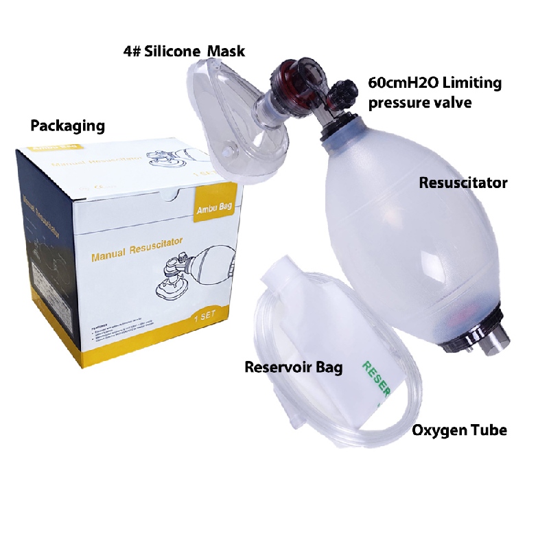 O ressuscitador manual é feito principalmente de silicone de grau médico, que apresenta excelente flexibilidade, elasticidade e biocompatibilidade. É macio ao toque e se ajusta perfeitamente ao rosto, ajudando a reduzir lesões por pressão na face do paciente.