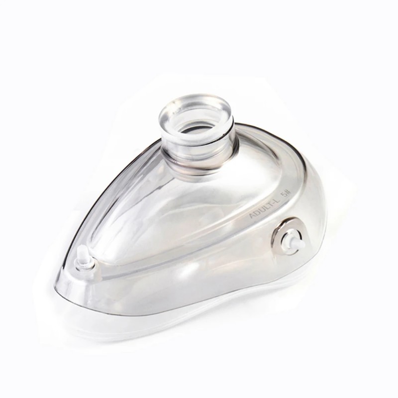 A máscara facial anestésica de silicone com revestimento rígido é um dispositivo médico projetado para administrar gases anestésicos a pacientes por inalação durante procedimentos cirúrgicos. Este modelo possui revestimento em policarbonato (PC). Máscara Apresenta uma estrutura superior rígida e transparente que facilita a operação manual e proporciona proteção eficaz aos pacientes.