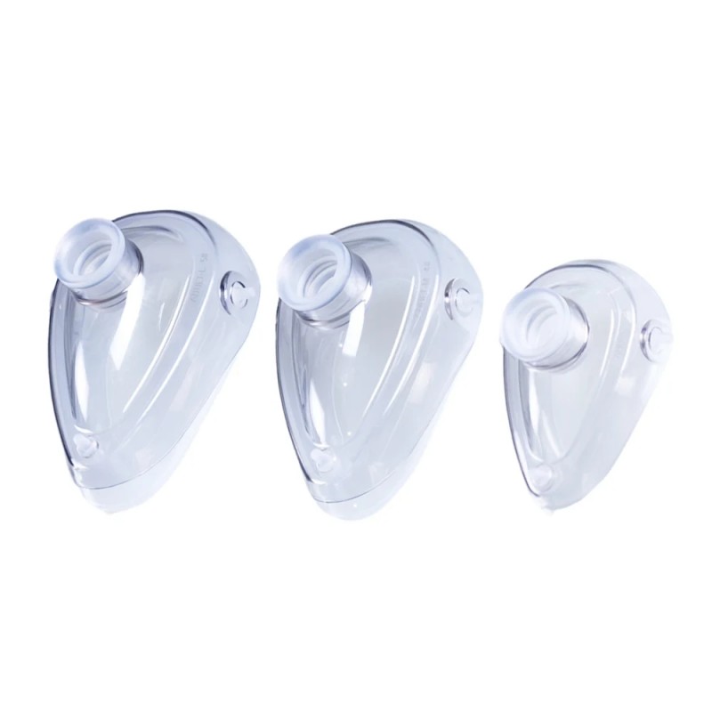 A máscara de anestesia autoclavável suporta até 40 ciclos de autoclavagem. Sua estrutura com borda macia garante o máximo conforto ao paciente e uma vedação hermética segura, enquanto a peça facial transparente permite o monitoramento contínuo do paciente. Equipada com conectores padrão de 22 mm e 15 mm, é totalmente compatível com circuitos respiratórios e outros equipamentos médicos relacionados.