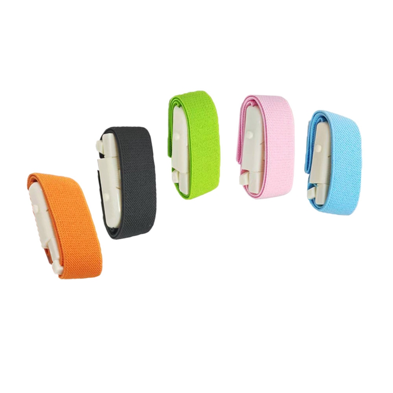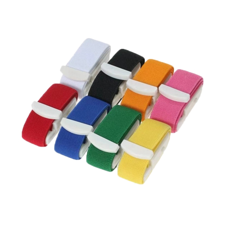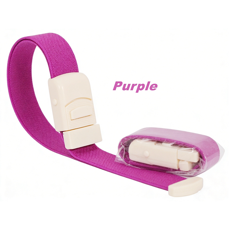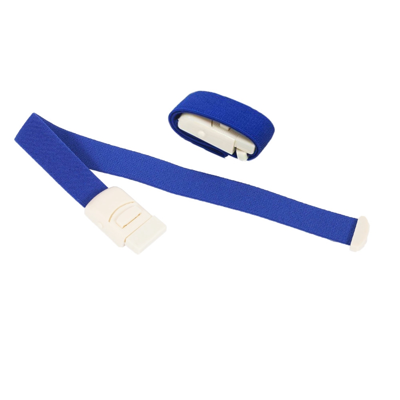 Este é um novo tipo de torniquete com fivela, diferente dos tradicionais de borracha.